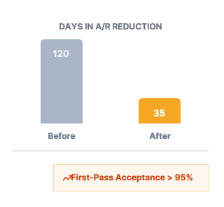 Complete elimination of avoidable TFL denials and restoration of clean claim throughput with 100% status visibility.