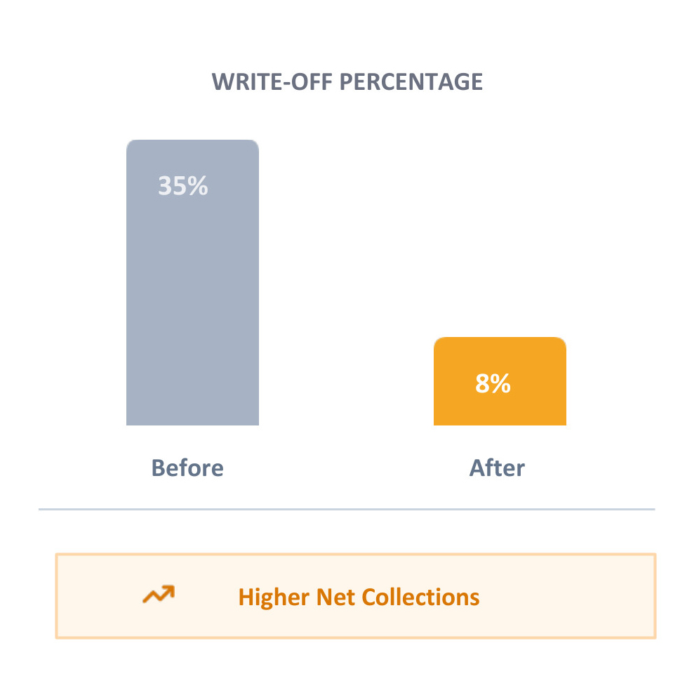 By correctly identifying and pursuing collectible OON claims, the practice drastically reduced unnecessary write-offs and increased net collections.