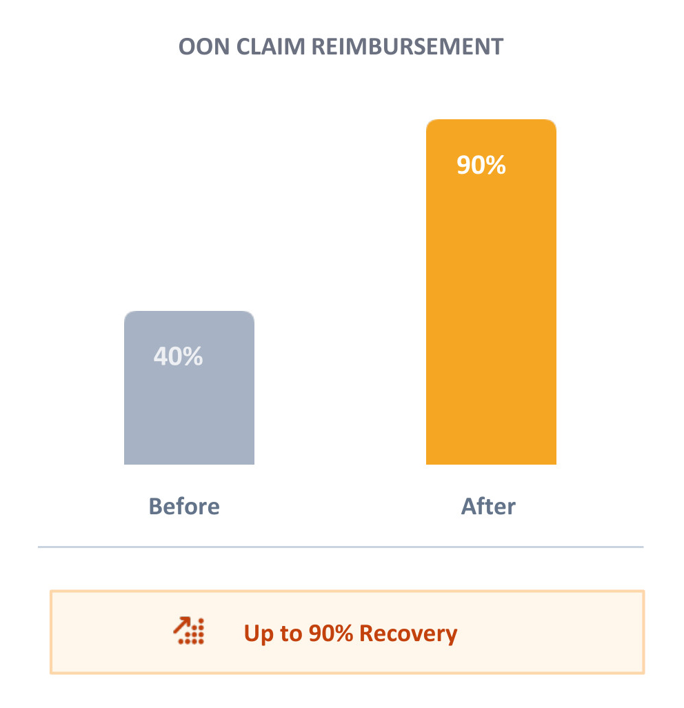 The provider faced significant revenue leakage on Out-of-Network (OON) claims, with commercial payers consistently underpaying or repricing claims to near-Medicare rates.